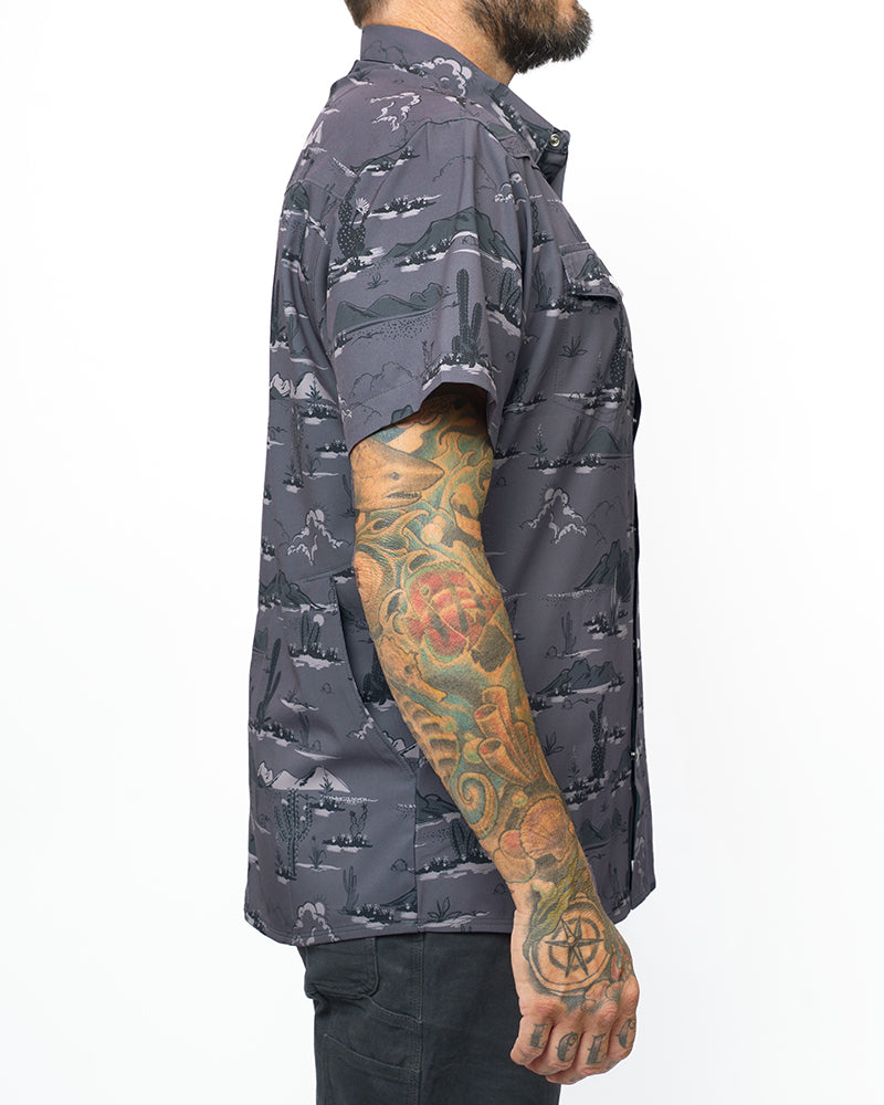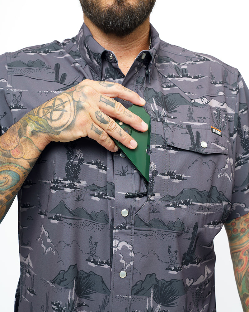 A western-style short-sleeved shirt built for you to move in but still look great. Dress it up or beat it up; it is a true “from the job site to campsite” shirt. Just save the clean one for date night. The San Saba Short Sleeve Shirt is the only workwear shirt that allows you to sweat on the job but keeps you cool and looking professional while not sacrificing fabric weight, durability, and pocket features. Many of us don’t stop there when the workweek is done; we get out and play. Whether it is a long weekend in the Sierras or a quick trip to Ocotillo, the polyester stretch fabric can handle whatever you throw at it.
